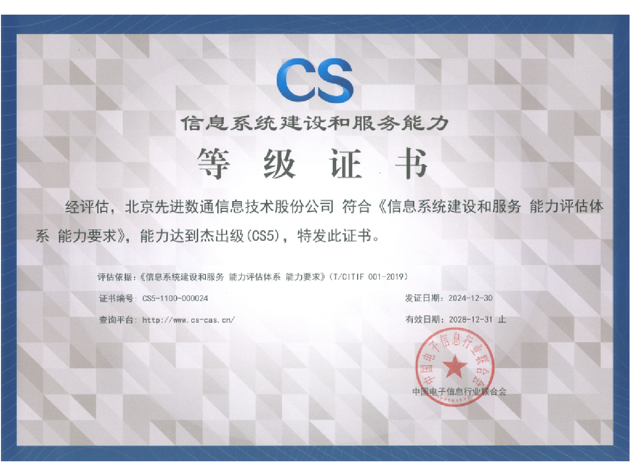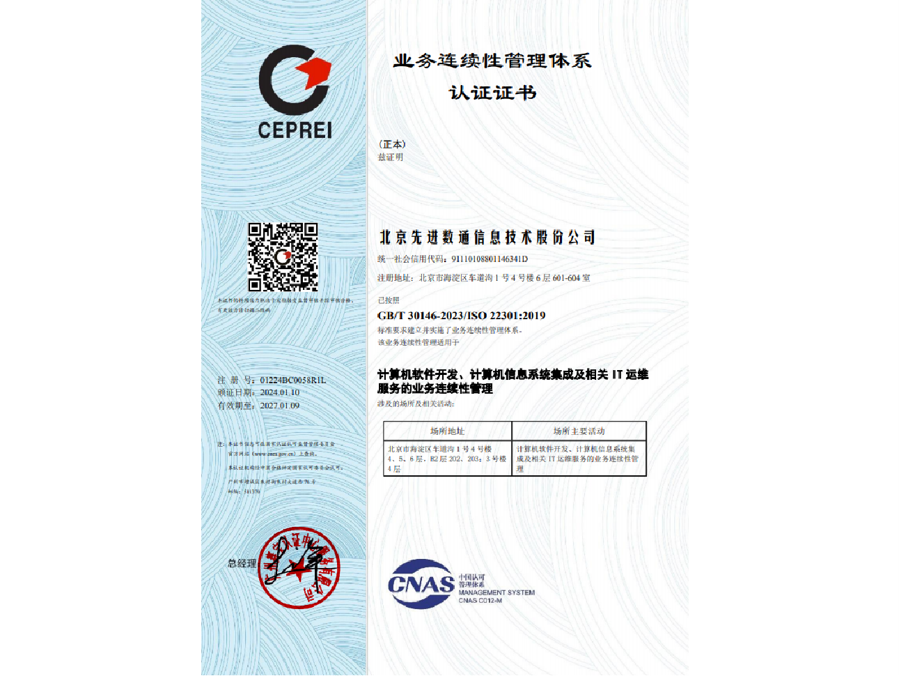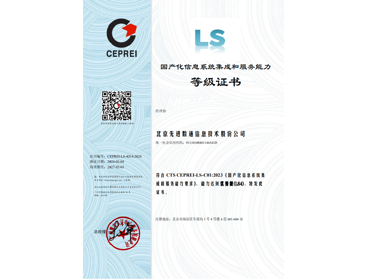 PA视讯国际 PA国际先后取得CMMIL5、软件能力成熟度五级(SPCA 5)、信息系统建设和服务能力评估体系(CS)5级、ITSS成熟度一级、信息系统安全集成服务资质二级、信息系统安全运维服务资质二级、国产化信息系统集成和服务能力评估四级(LS4)、北京市企业技术中心等资质认证,并取得ISO9001、ISO20000、ISO27001、ISO14001、ISO45001、ISO22301、ISO37001、ISO28001、GBT29490等标准体系认证,具备行业领先的技术开发、工程实施及服务保障能力。