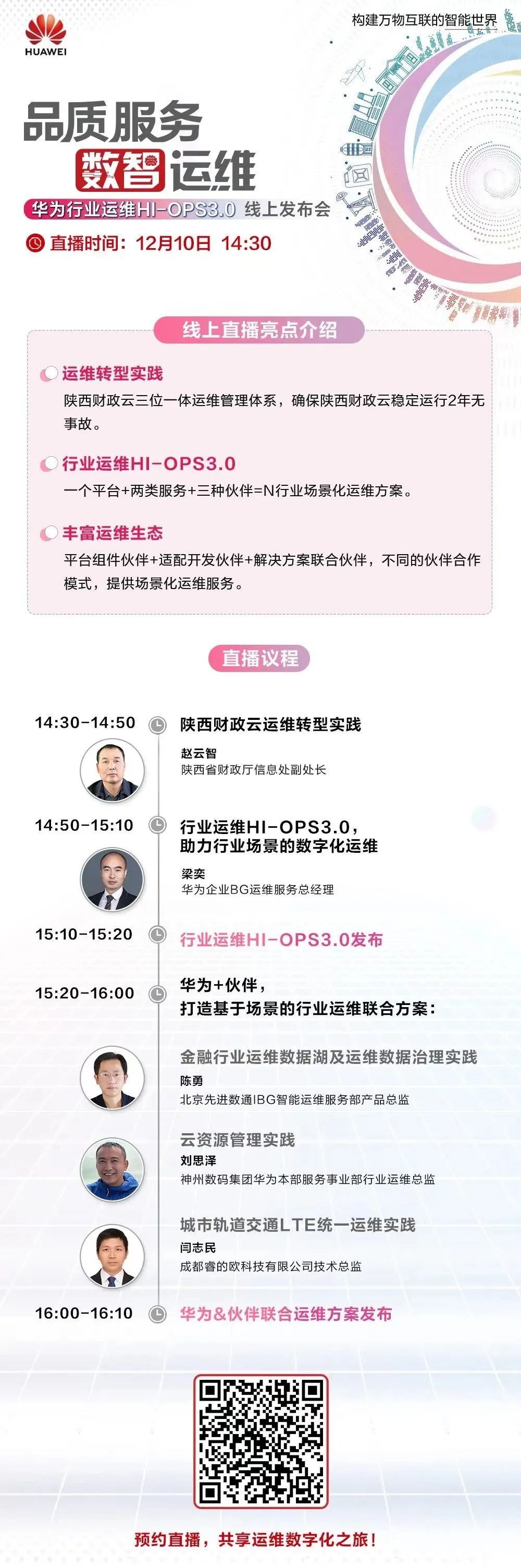 华为行业运维HI-OPS3.0线上发布会即将来袭!!!